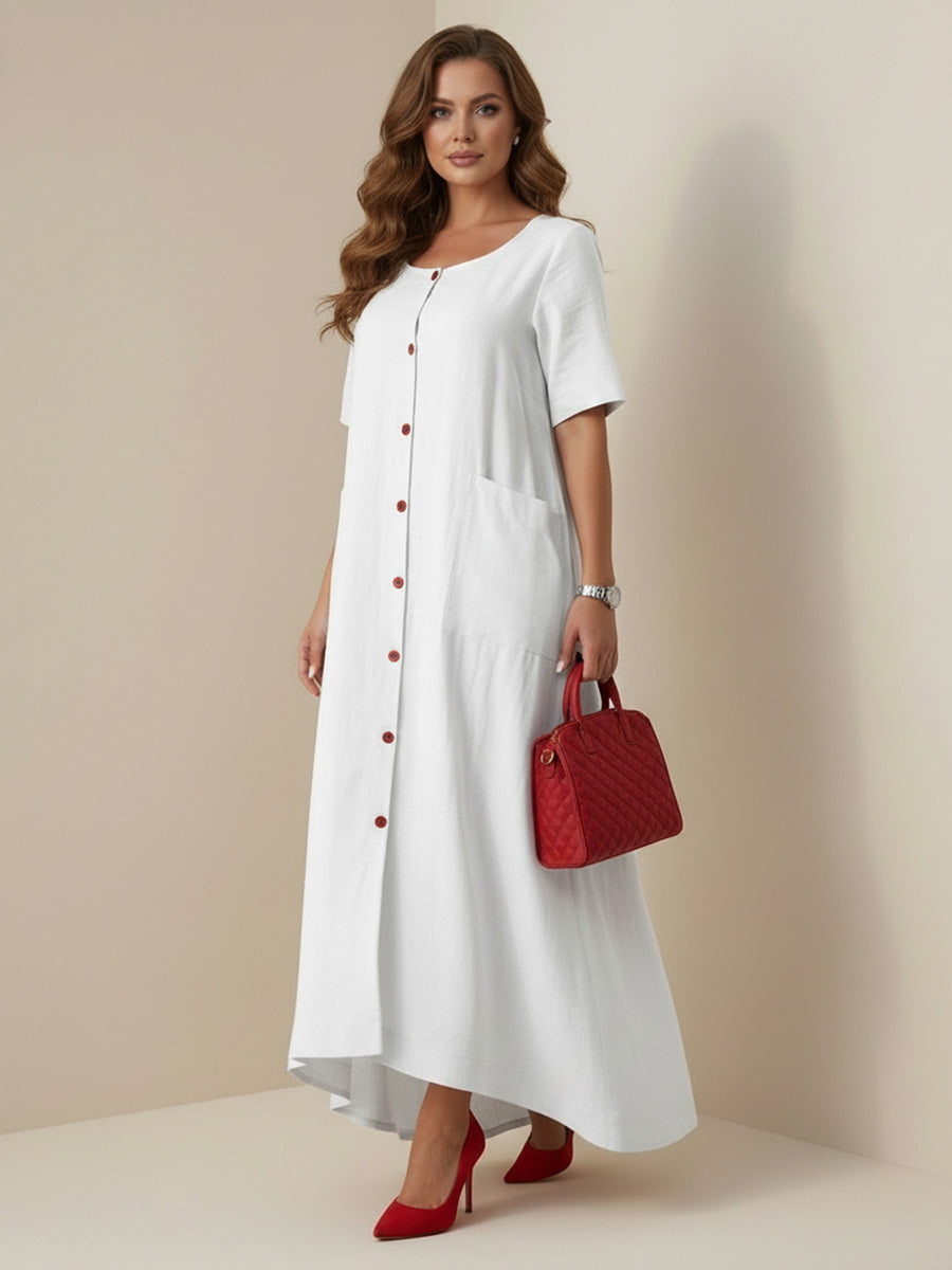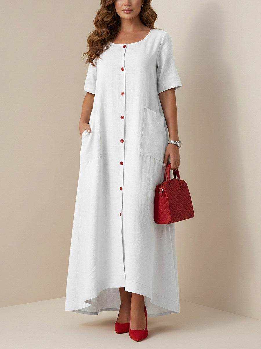 Camilla | Column Loose Buttoned Contrast Color Pockets Split-Joint Square-Neck Maxi Dresses Shirt Dress